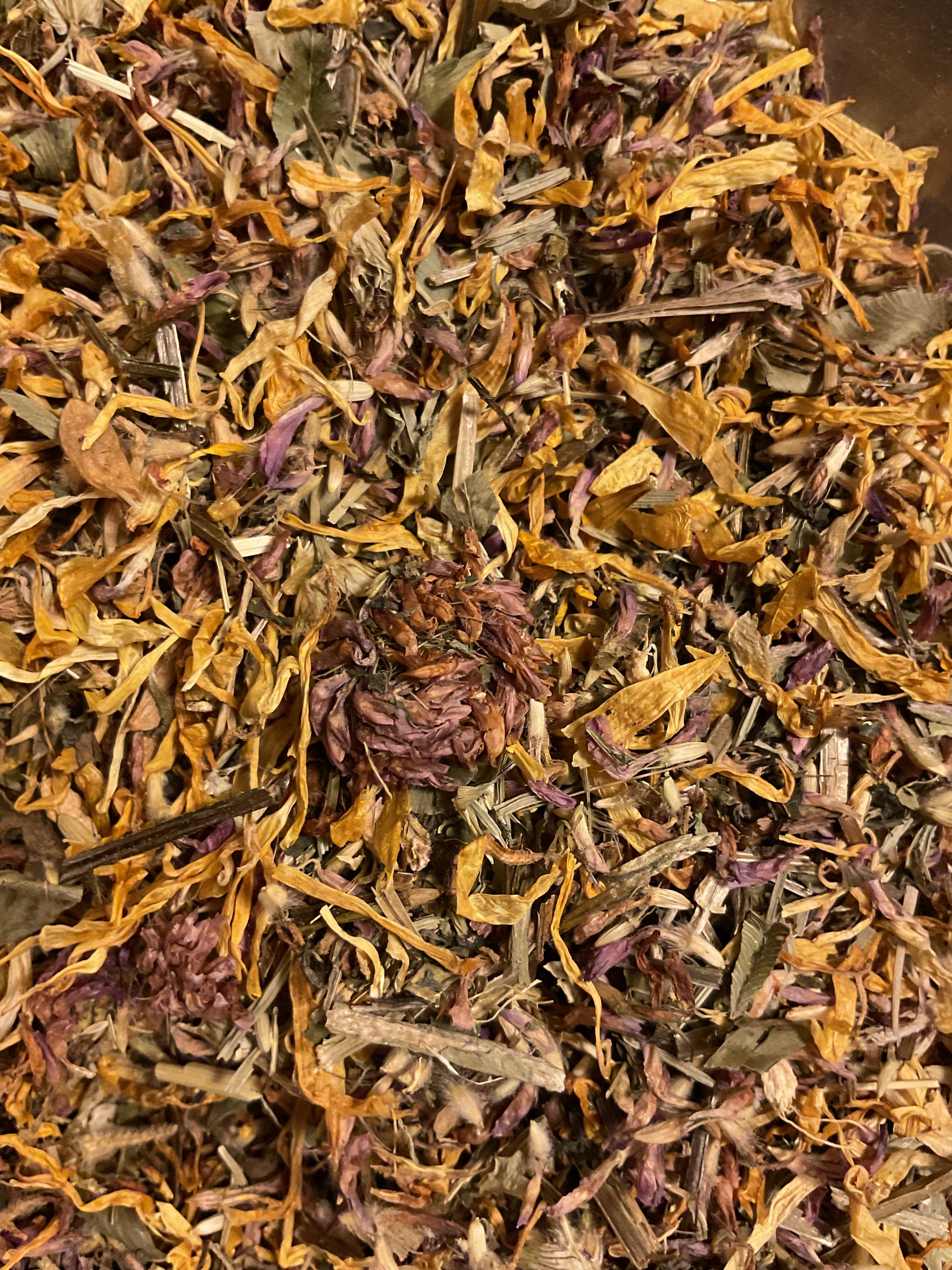 This blend is formulated to support lymphatic drainage, detoxification, and fluid balance. It includes lymph-moving, anti-inflammatory, and mineral-rich herbs that help clear waste from the body, reduce swelling, and boost circulation.